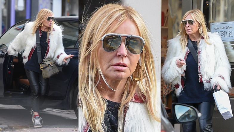 Monika olejnik na zakupach w marynarce z głębokim dekoltem.